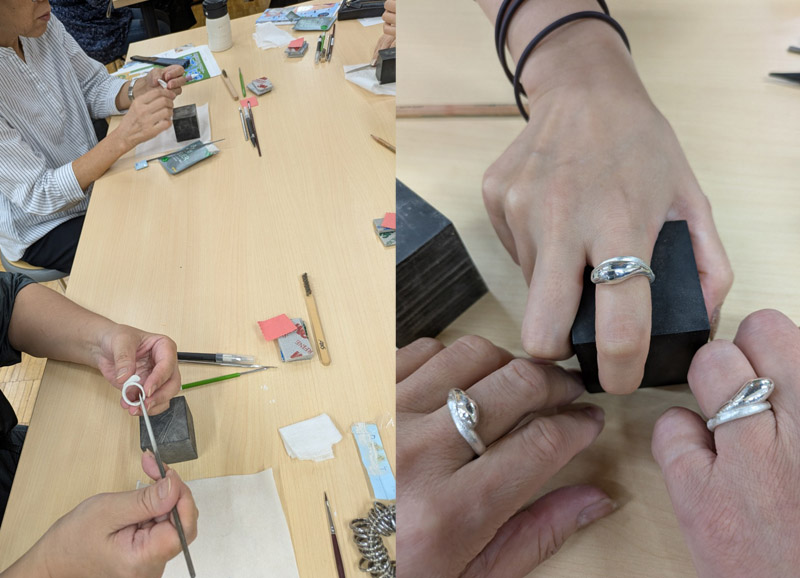 参加された皆さんはサンプル作品をみてどんなデザインにしようかと迷われていましたが、いざ制作すると手際よくリングを制作していきました。
