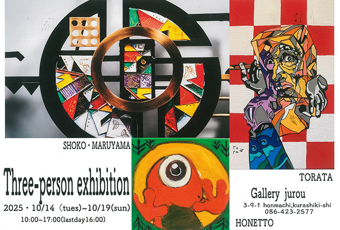 Three-person exhibition丸山昌子【時間】10:00~17:00 ※最終日は16:00 【会場】ギャラリー十露(JUROU) 【住所】〒710-0054 岡山県倉敷市本町3-9-1 【お問合せ】070-2359-0810 |